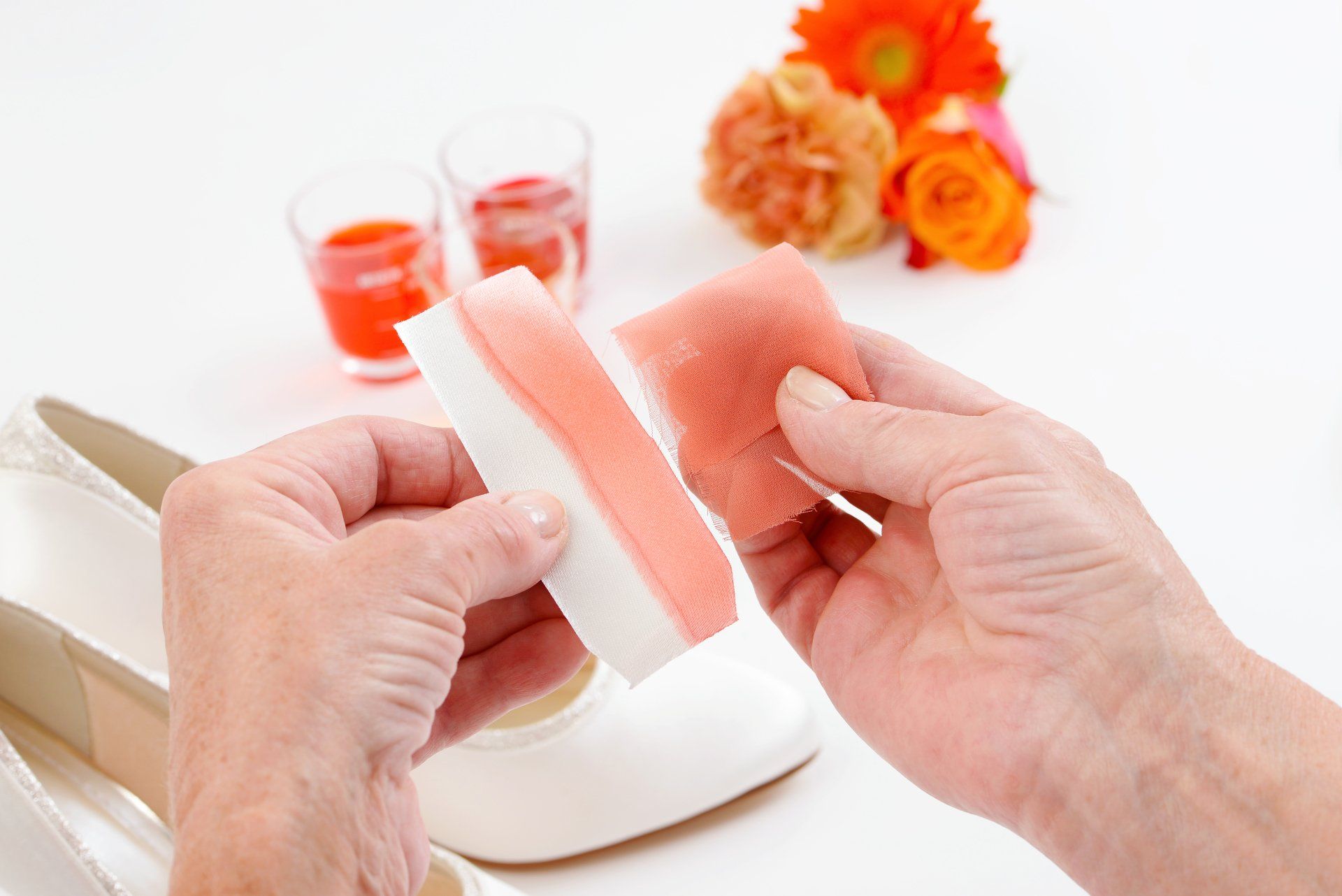 Hast du ein bestimmtes Kleidungsstück oder einen individuellen Farbwunsch für deine Schuhe, dann gib ihn uns weiter, mittels eines Stoffstücks oder Farbmusters, und wir übermitteln ihn zusammen mit deinen Schuhen an Elsa Coloured Shoes.